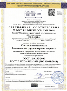 Мы постоянно улучшаем нашу систему менеджмента качества, основанную на стандарте ГОСТ Р ИСО 45001-2020 (ISO 45001 :2018).